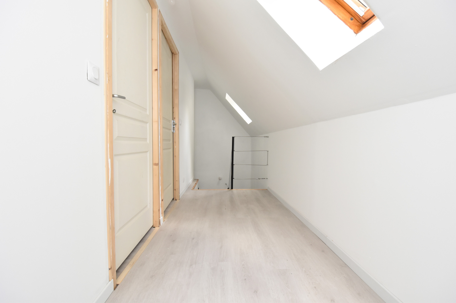 - À l'étage: couloir, deux grandes chambres.