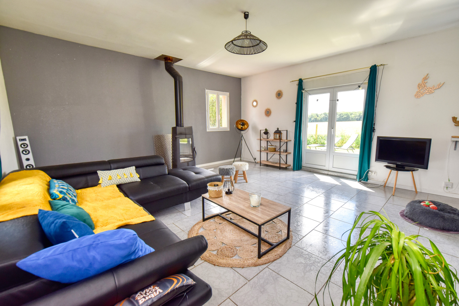 Au rez-de-chaussée: Hall d'entrée, séjour avec poêle à bois, cuisine aménagée avec coin repas, salle de bains, arrière cuisine/lingerie, WC.