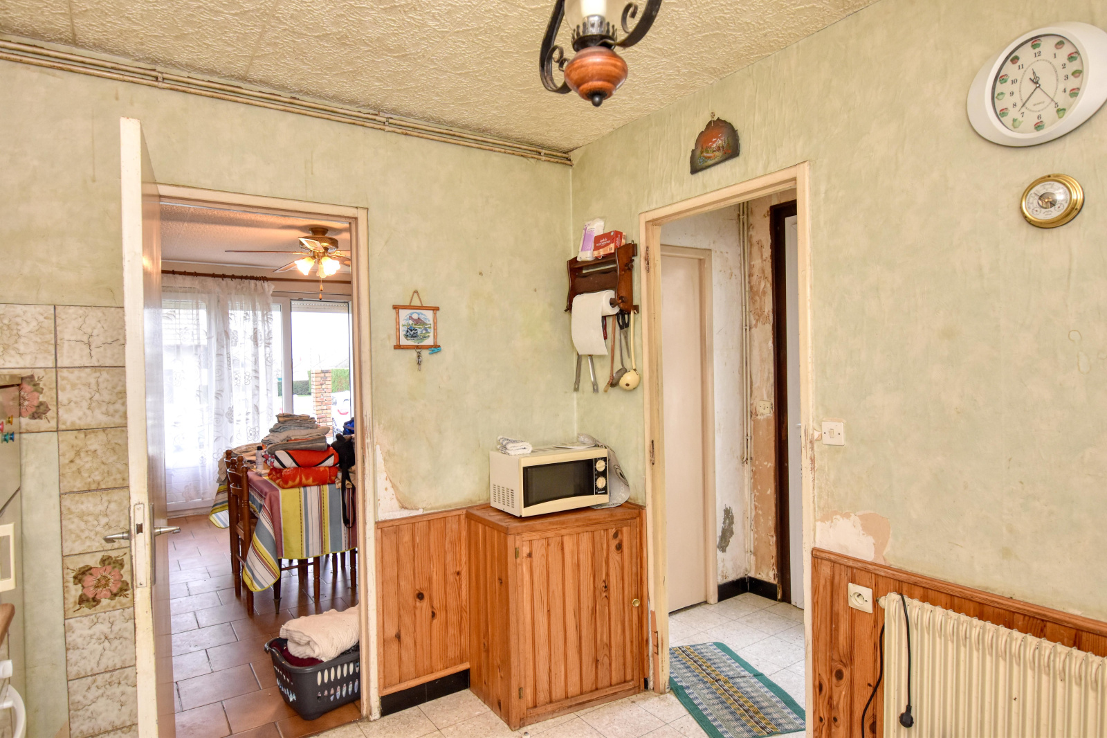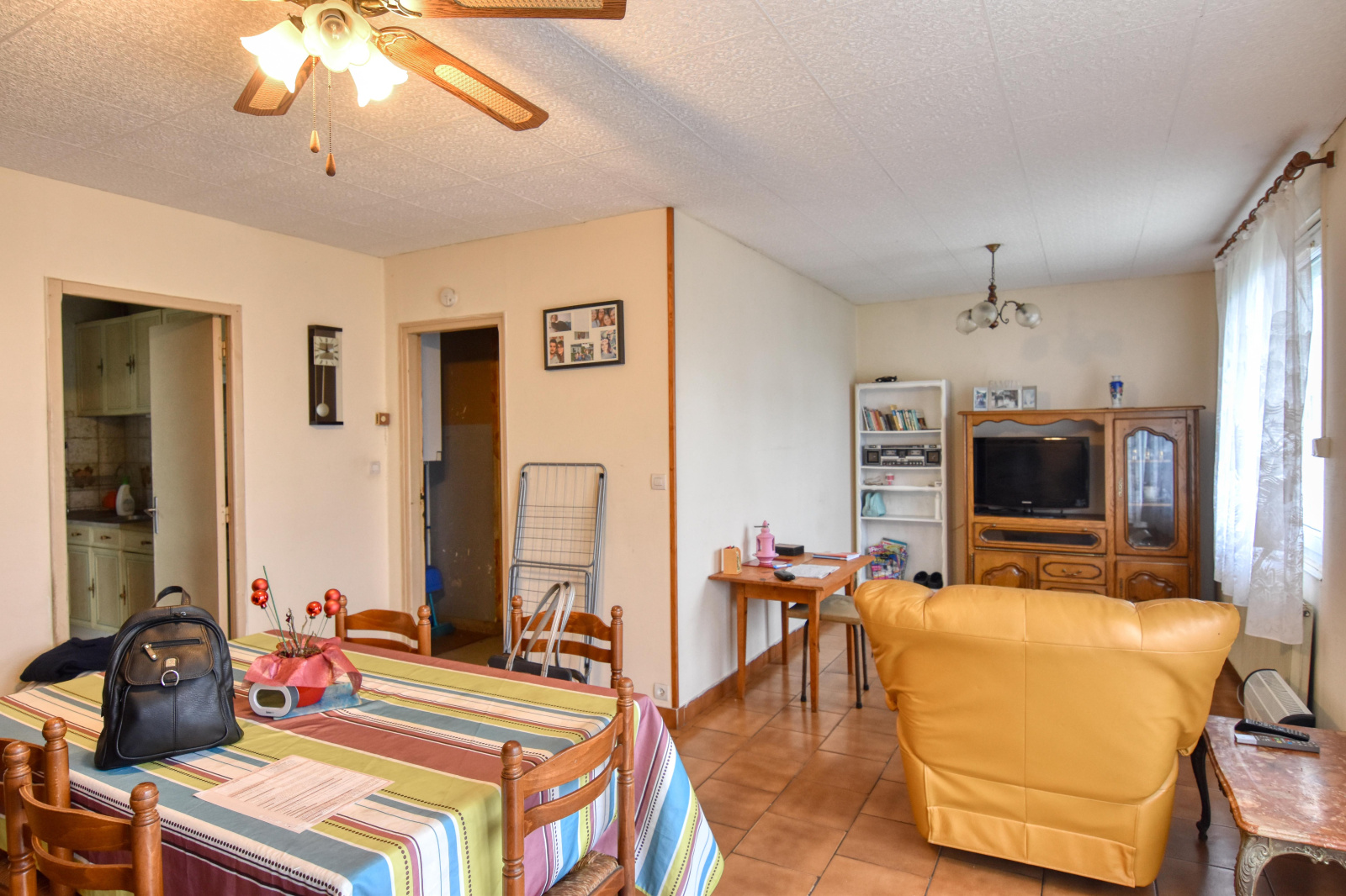 - Au rez-de-chausée : entrée, cuisine, salon/séjour, une chambre de plain-pied, une piéce à aménager, salle de bains et WC séparés.