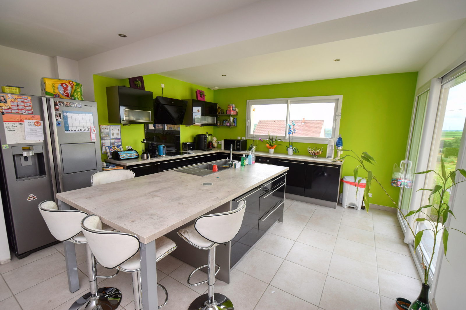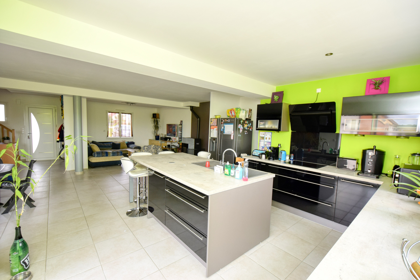 Magnifique pavillon individuel sur sous-sol complet, construit en 2015, de 129m2 habitables et offrant : Grande pièce à vivre de 62m2 avec belle cuisine US aménagée et équipée et poêle à granules, une chambre de plain-pied, salle de bains, W.C.