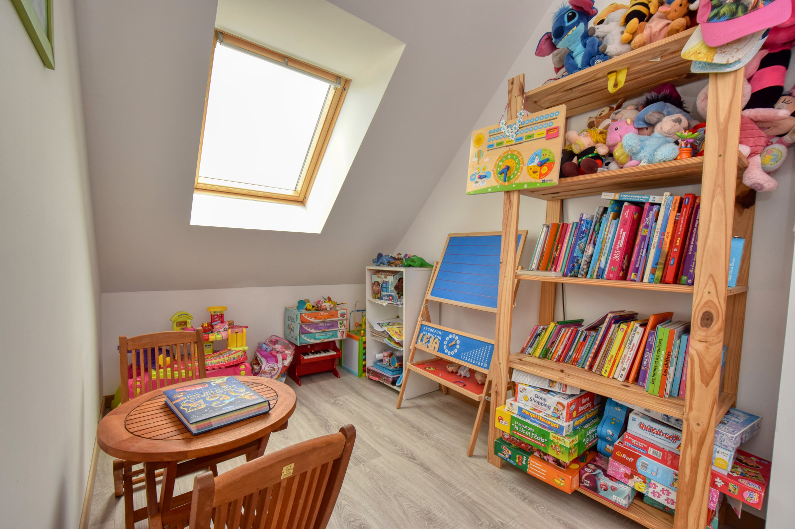 À l'étage: palier bureau/salle de jeux, une seconde salle de bains et W.C. indépendant, 2 chambres ainsi qu'une grande suite parentale avec sa salle d'eau privative.