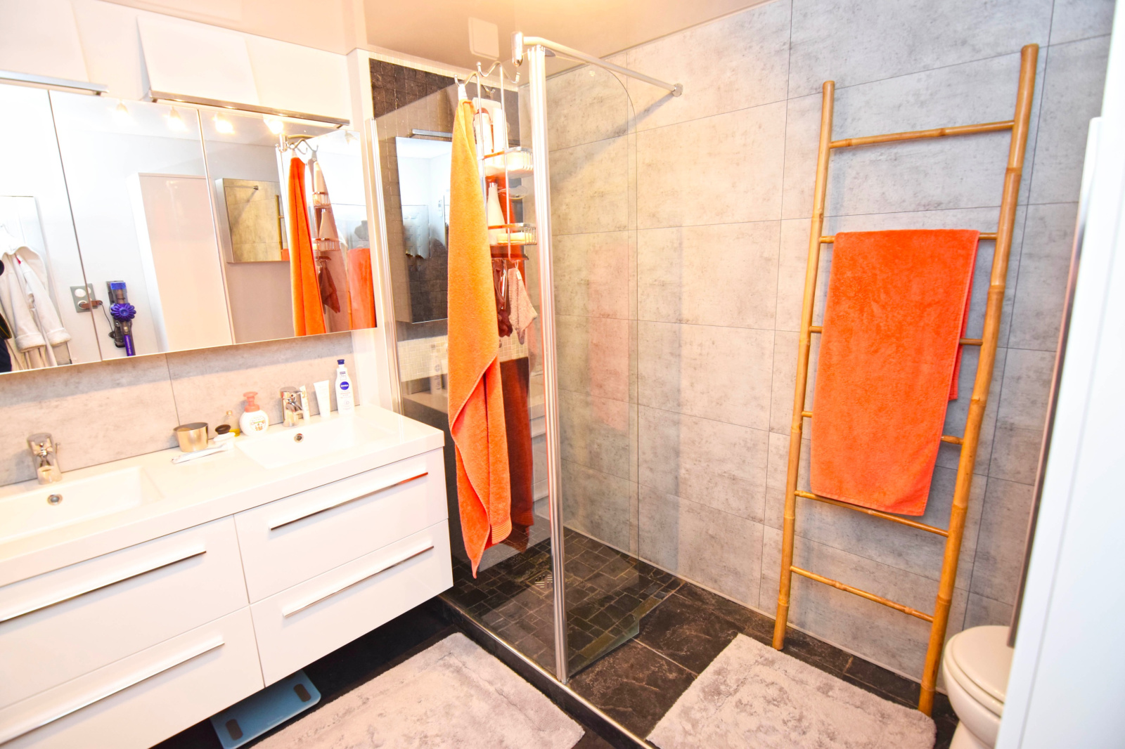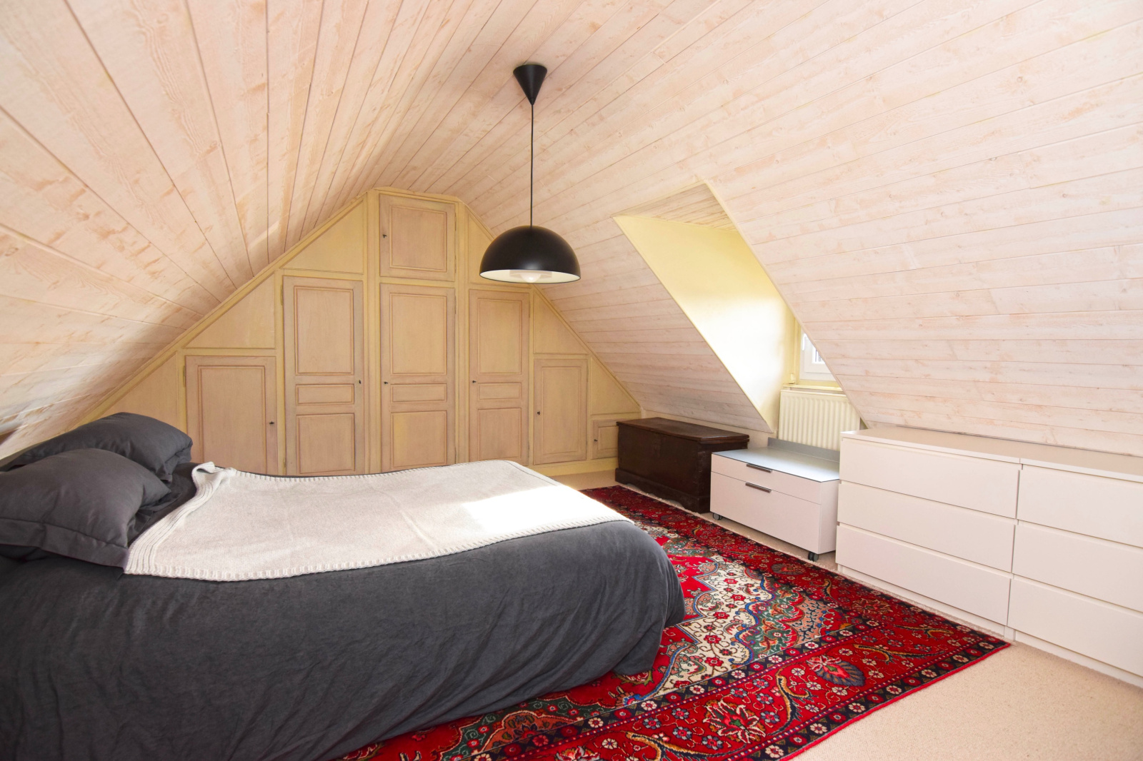 À l'étage: couloir avec placards sous rempants, 3 chambres (dont une grande chambre avec dressing sur mesures).