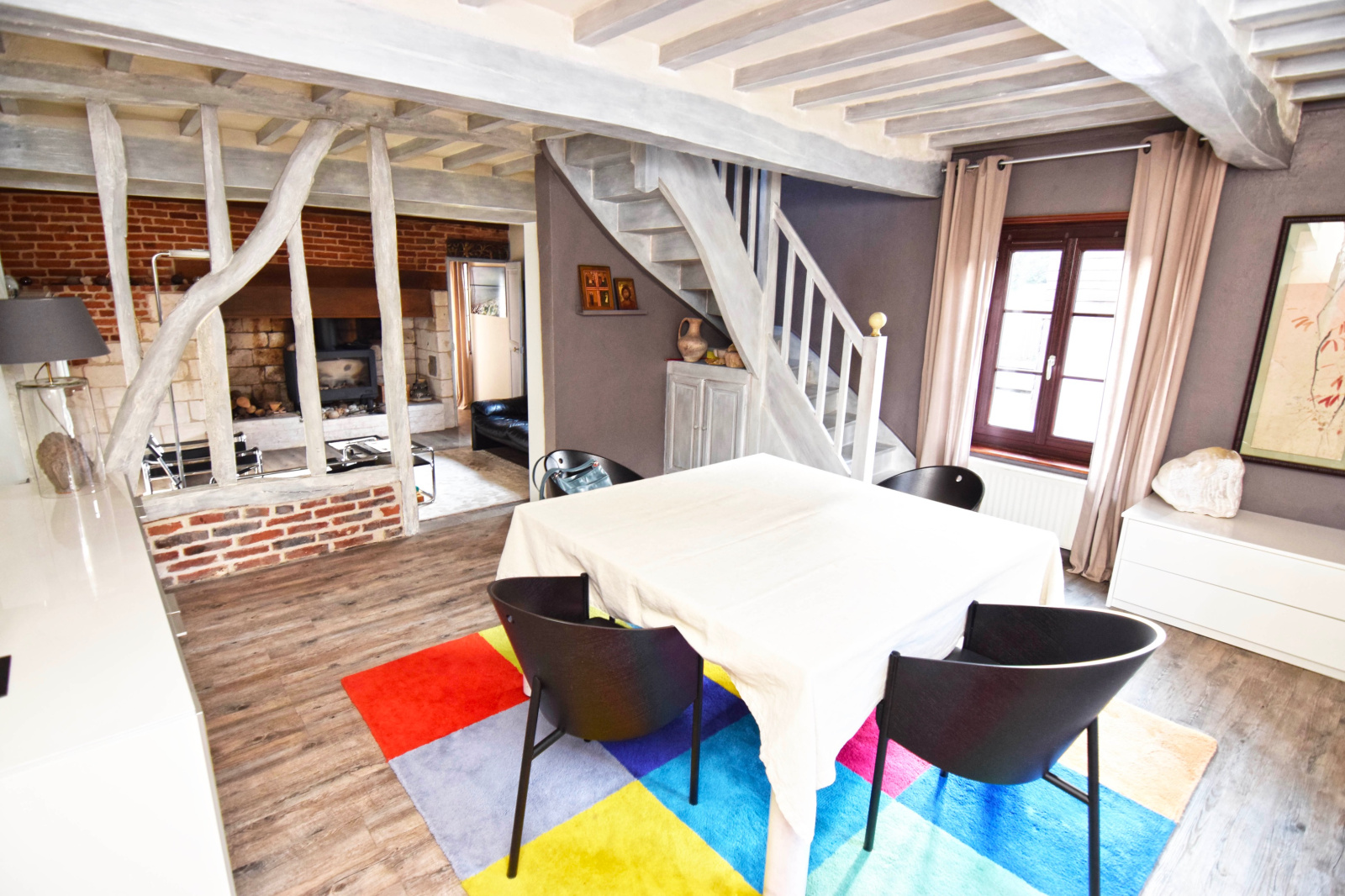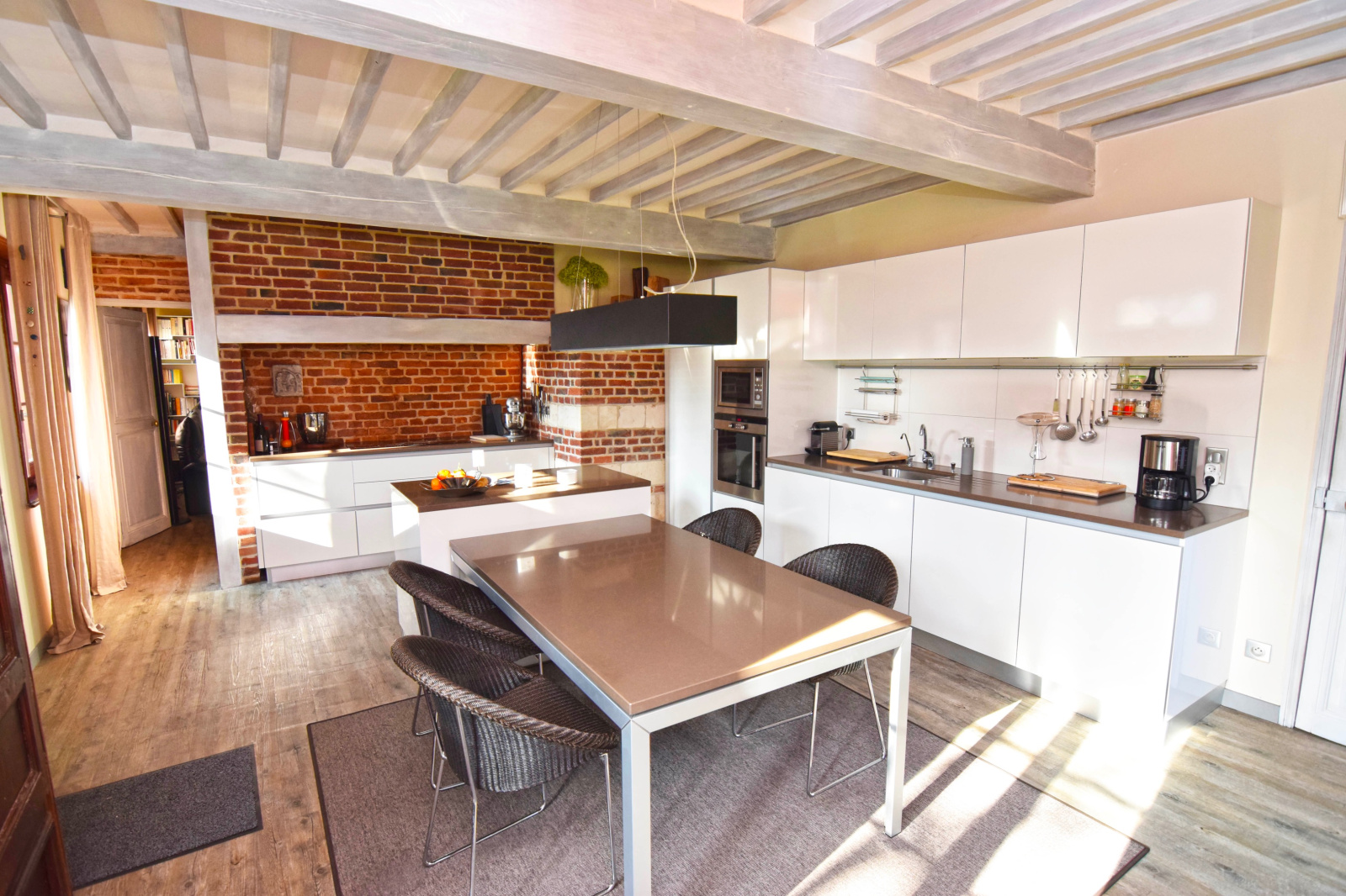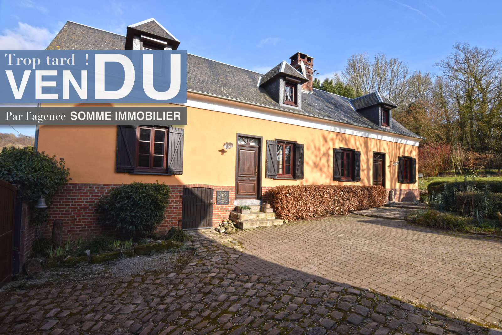 Magnifique longère picarde de 110m2 habitables avec beaucoup de cachet et offrant : Salle/Salon de 40m2 avec pôele à bois GODIN, grande cuisine aménagée et entièrement équipée de 30m2 (de qualité supérieure), salle d'eau (avec double vasque, douche italienne, chauffe serviette et W.C.), un second W.C. indépendant avec lave-mains.