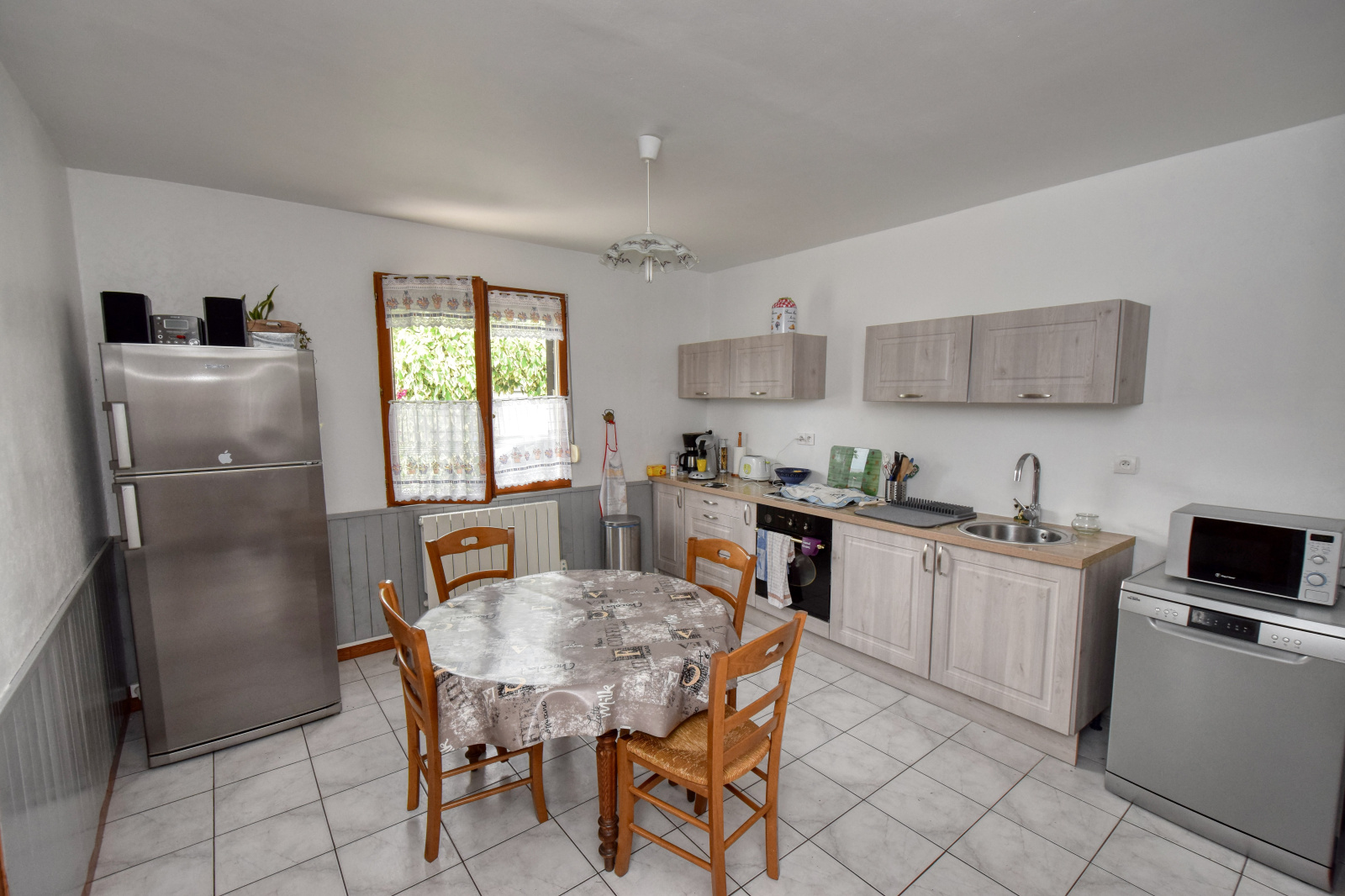 Belle maison de village individuelle de 139m² habitables et offrant: Belle pièce à vivre de 51m² avec poêle à bois ouverte sur une cuisine aménagée et équipée (neuve), arriére-cuisine, Salle d'eau (avec douche italienne), lingerie, WC.