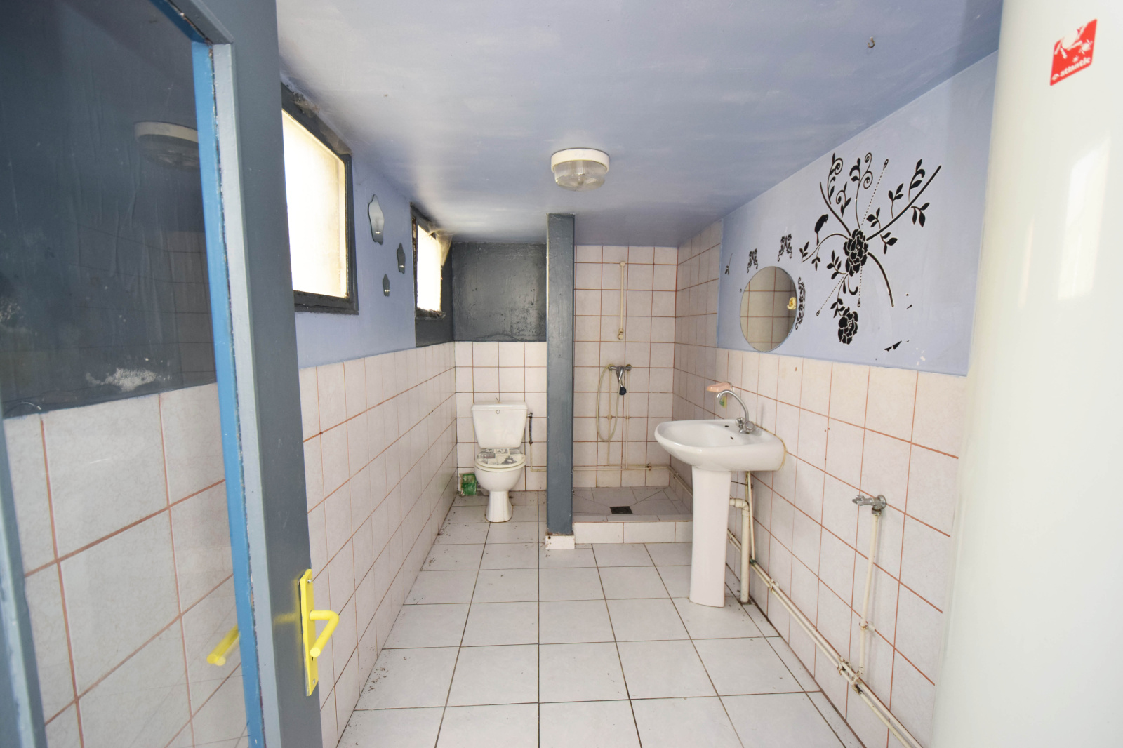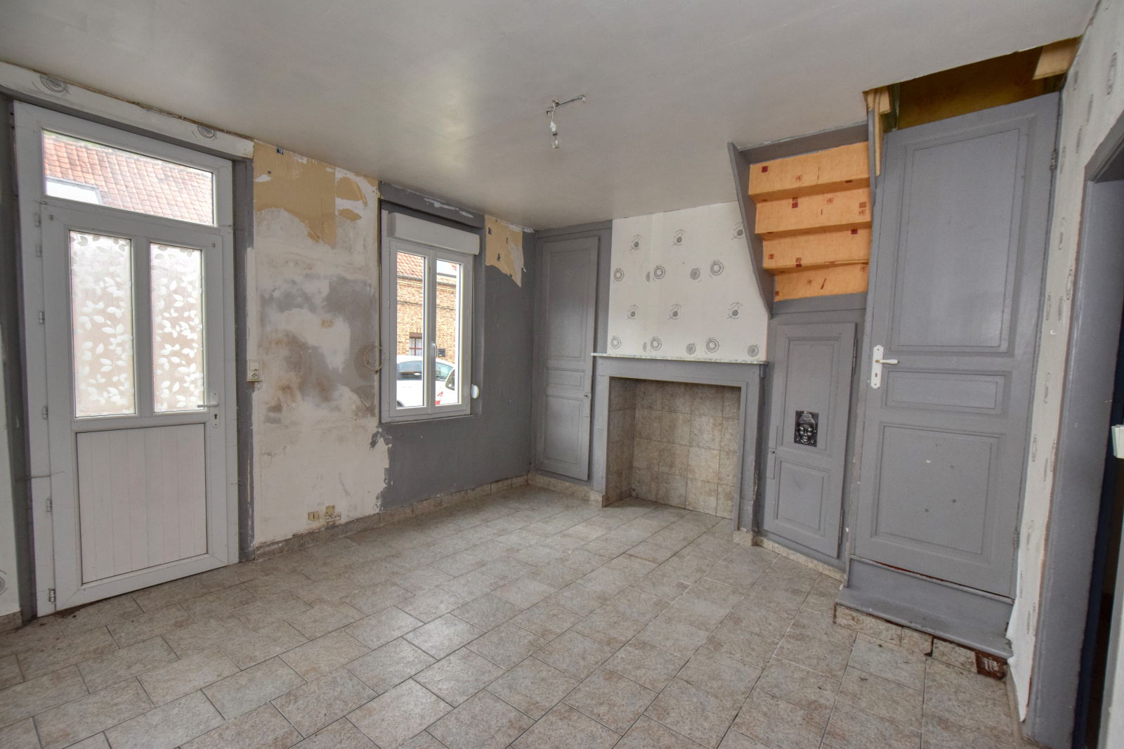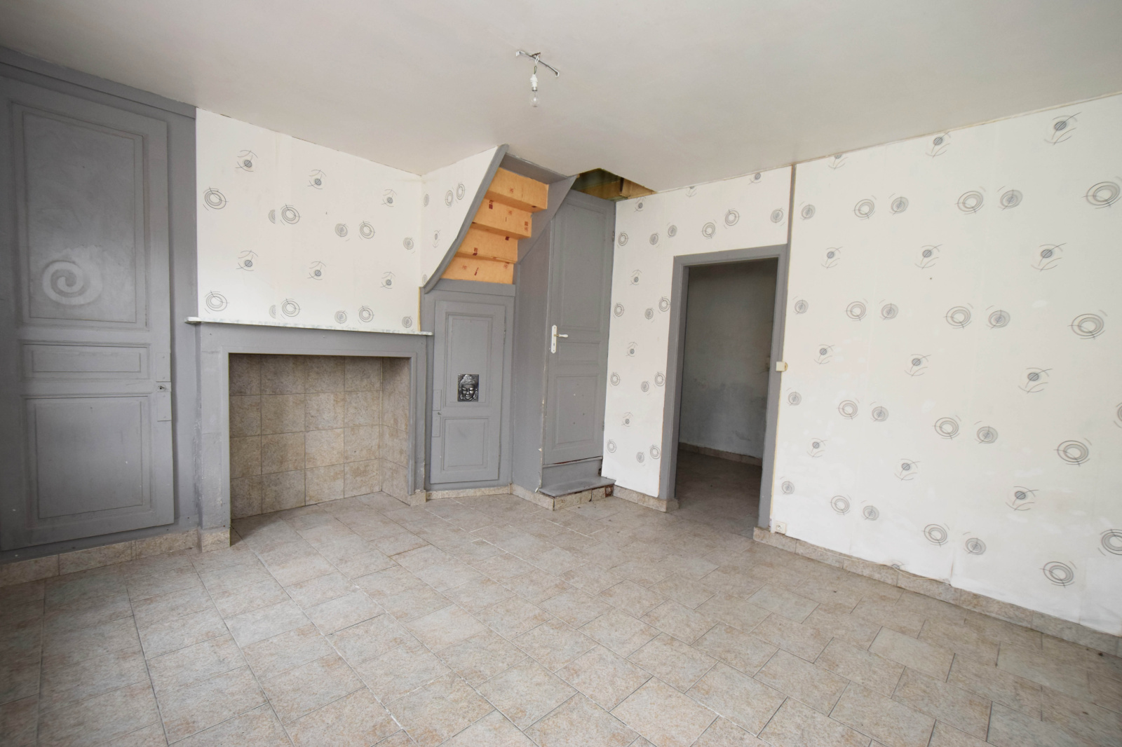 Au RDC: Séjour avec une cheminée, cuisine, salle d'eau avec WC.