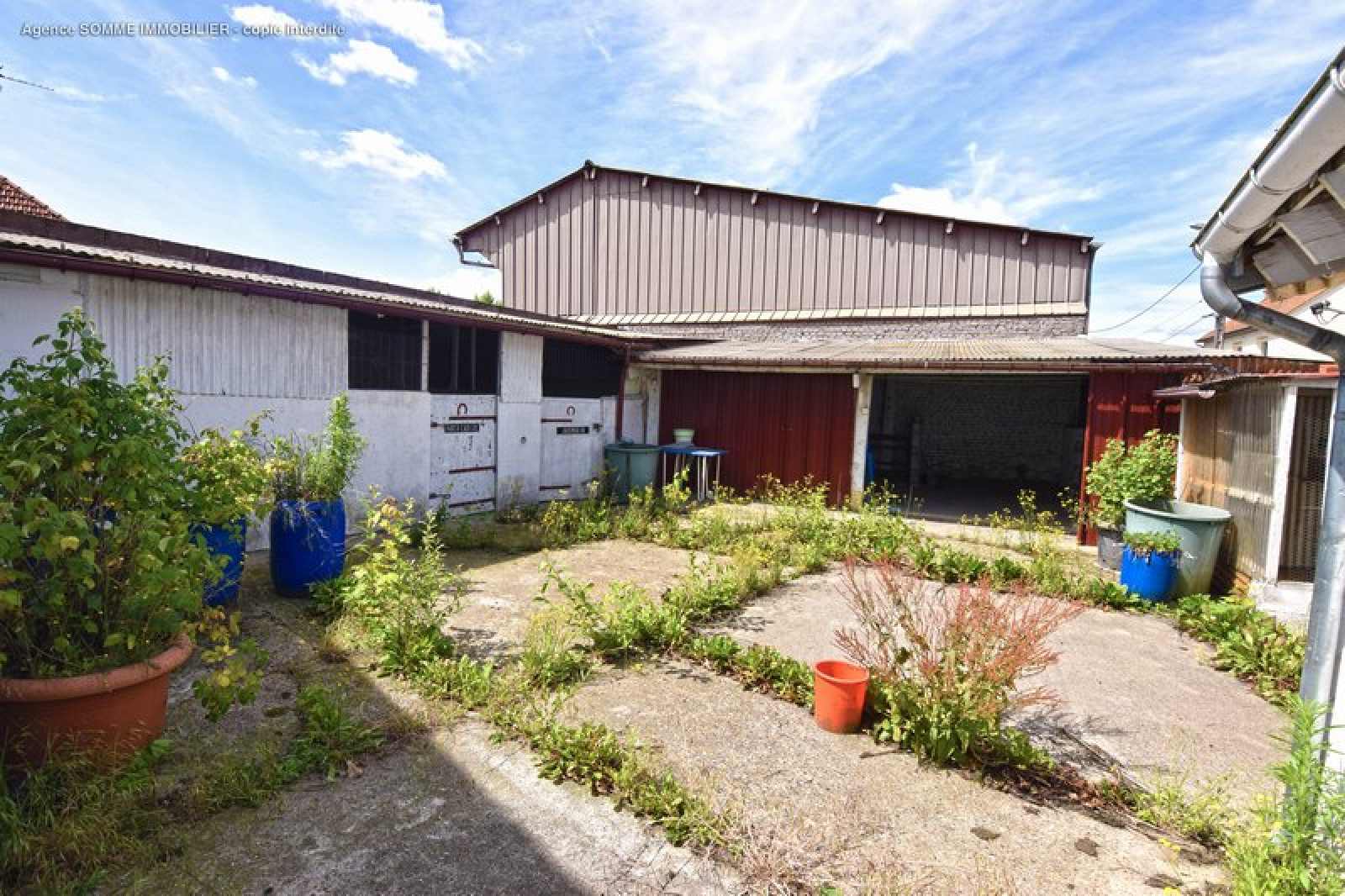Grande cour sans vis-à-vis avec abris véhicules et nombreuses dépendances.