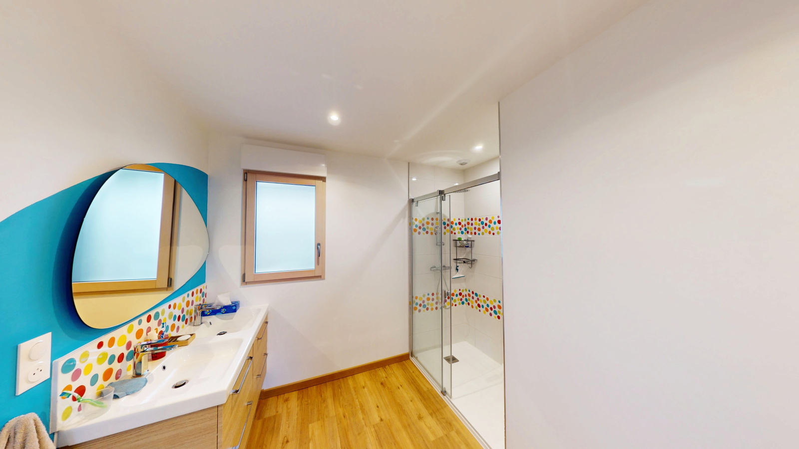 À l’étage, 5 grandes chambres, chacune avec son petit dressing, ainsi qu’une seconde salle d’eau avec WC.
