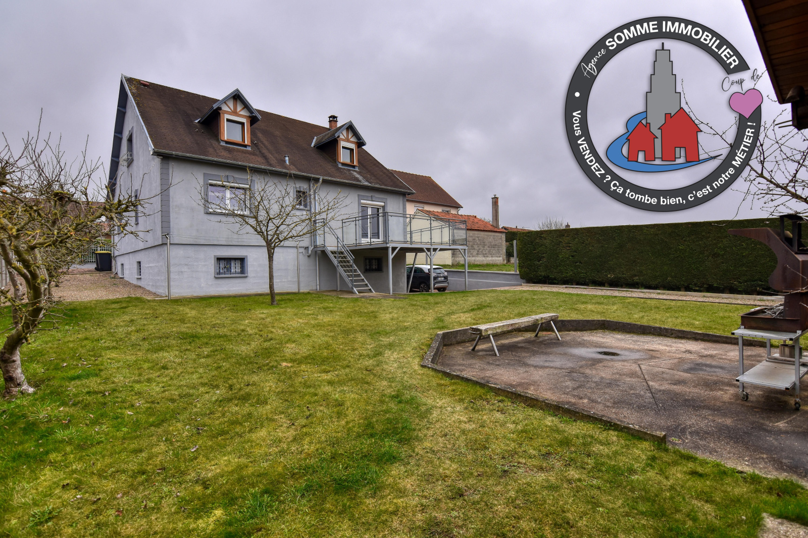 Au sous-sol : une pièce à aménager, laverie, chaufferie, grand garage.