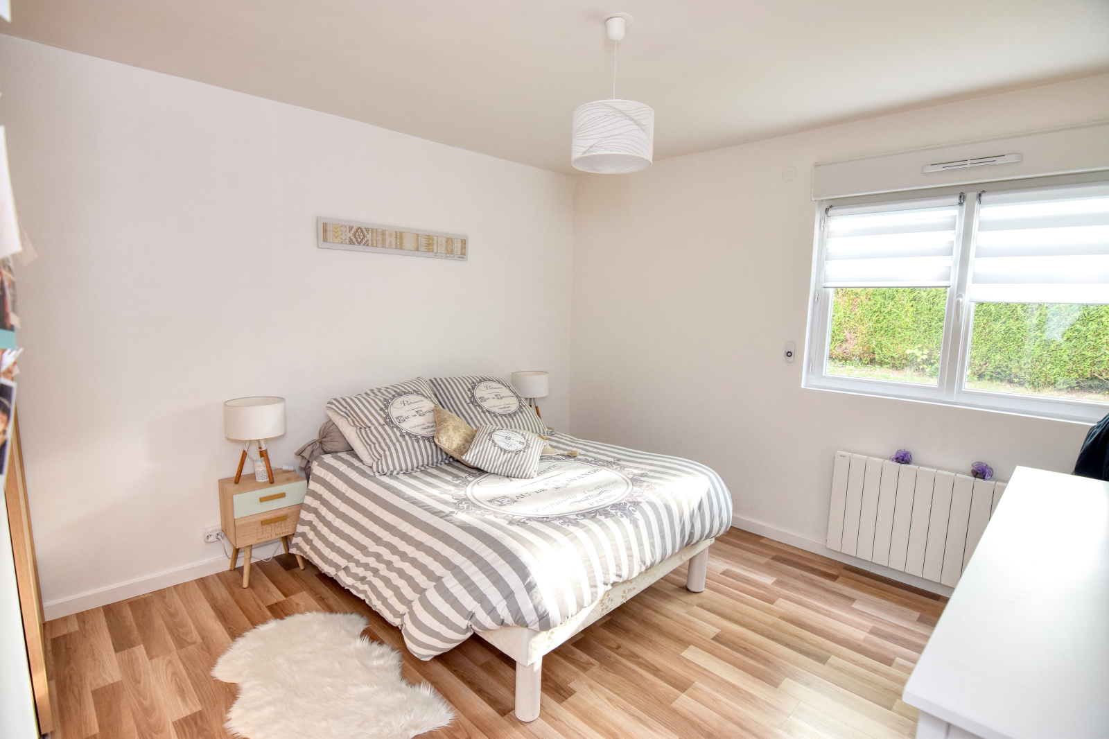 Menuiseries PVC double vitrage et volets roulants électriques (centralisés), chauffage électrique (radiateurs à inertie récents).