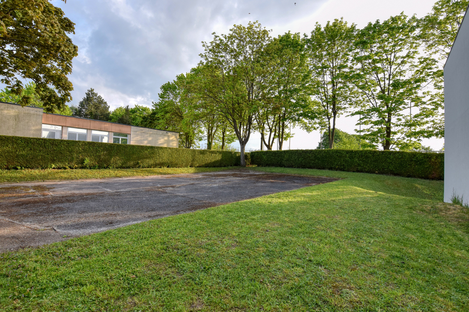 Deux places de parking attribuées. Espaces verts à la disposition des copropriétaires.