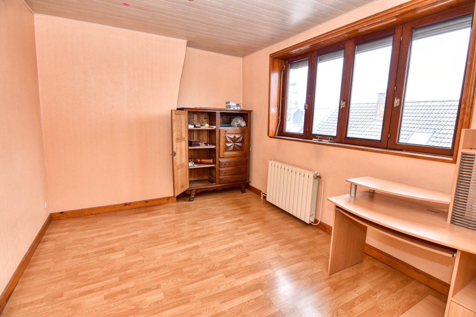 Au 1er étage : salle de bain avec WC, belle chambre de 14m².