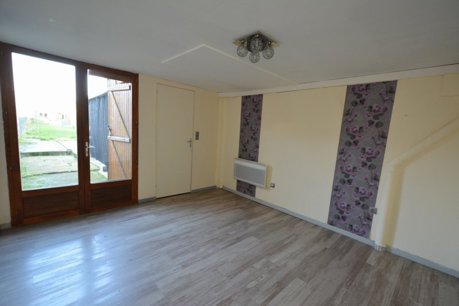 Maison de ville en bon état comprenant: cuisine am²nagée/équipée avec poéle à granules, salon, séjour, salle de bains (avec WC). A l'étage: une chambre. CE, Double vitrage. Garage, terrasse, cour et jardin. Le tout sur 226m2 de terrain clos. Classe énergie: D Prix: 83 000é F.A.C. Réf.: 815 Idéale 1ére acquisition ou investisseurs !!!