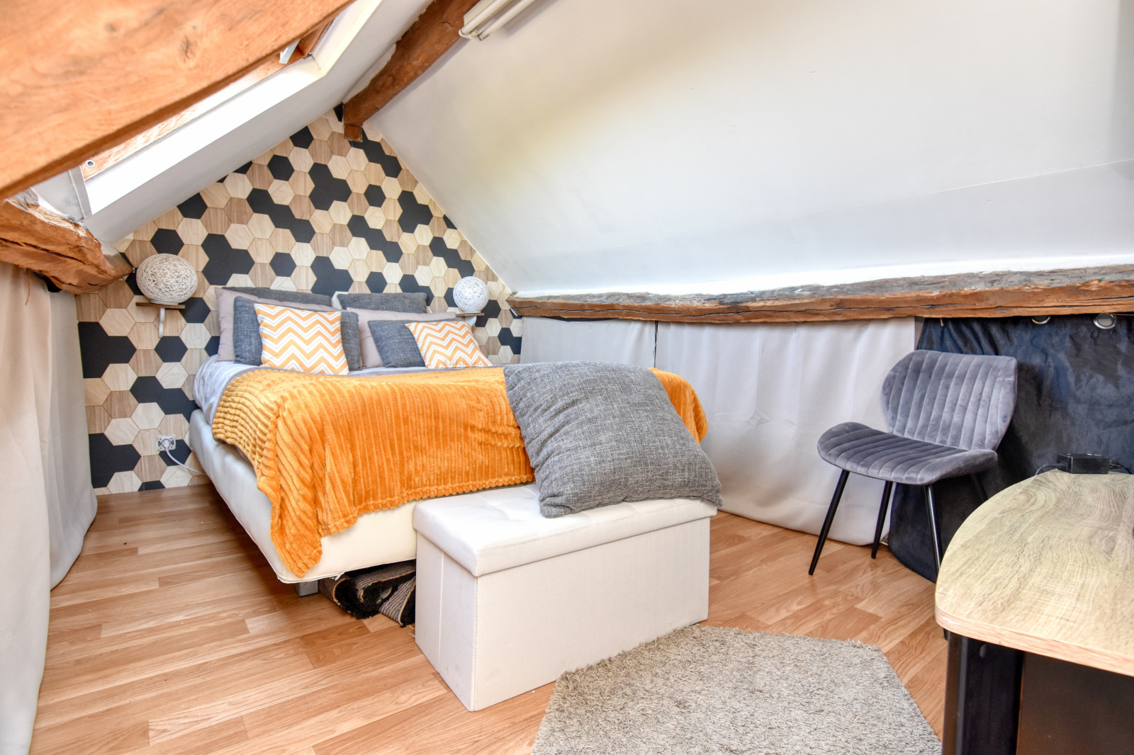 - Au 3ème : Une chambre mansardée (de 13m2 au sol).