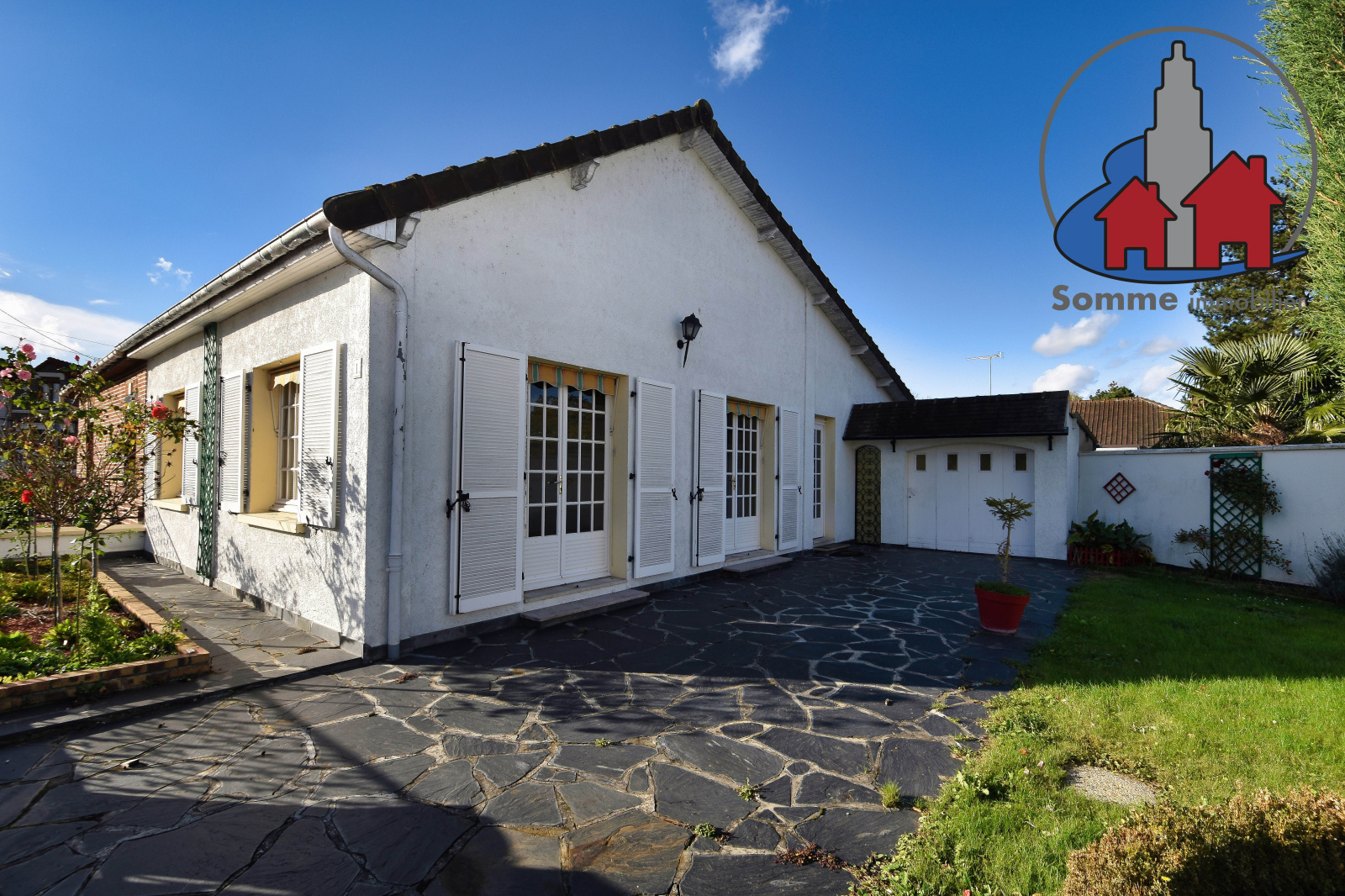 Charmante maison jumelée sur un seul côté et située en retrait de rue, d'une surface habitable de 87m², érigée sur sous-sol partiel et comprenant : - Au rez-de-chaussée : Entrée par couloir, salle/salon de 38m2, cuisine aménagée et équipée, une belle chambre de plain-pied, salle de bains, W.C. avec lave-mains. - À l'étage : une chambre palière avec penderie, une troisième chambre avec dressing intégré. Grenier. Sous-sous avec espace de stockage et lingerie, chaufferie et cave. Chauffage mixte par pompe à chaleur AIR-EAU et chaudière fioul. Garage avec atelier, terrasse, cour avec accès véhicules et jardin. Le tout sur un agréable terrain clos de 370m² situé dans un environnement paisible et une rue très peu passante. Les + : Construction robuste offrant un beau potentiel, en retrait d'une rue calme. Autonomie de plain-pied... À visiter rapidement !!!