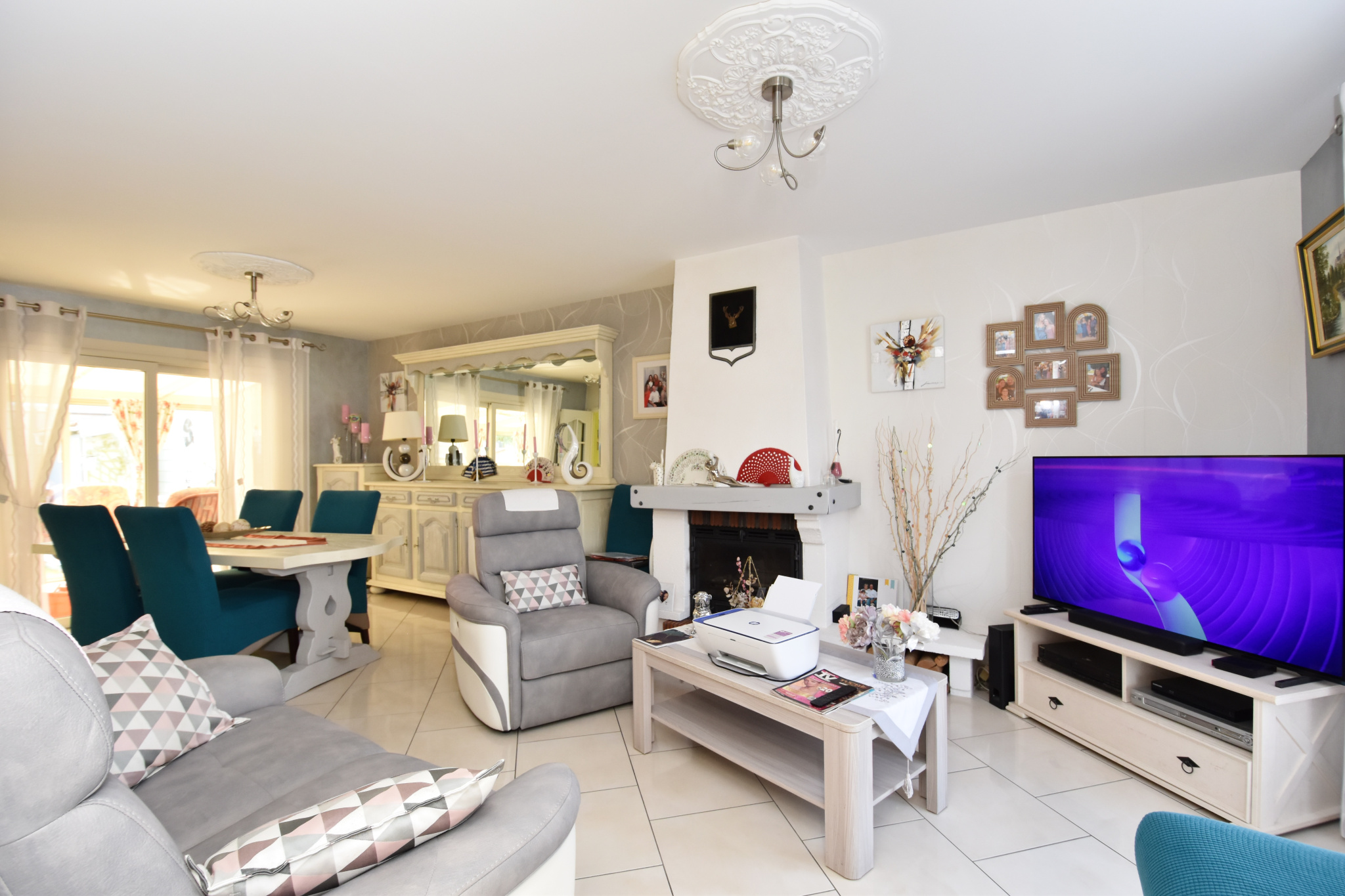 Chauffage central au gaz de ville (+ cheminée bois insert), menuiseries PVC double vitrage avec volets roulants électriques.