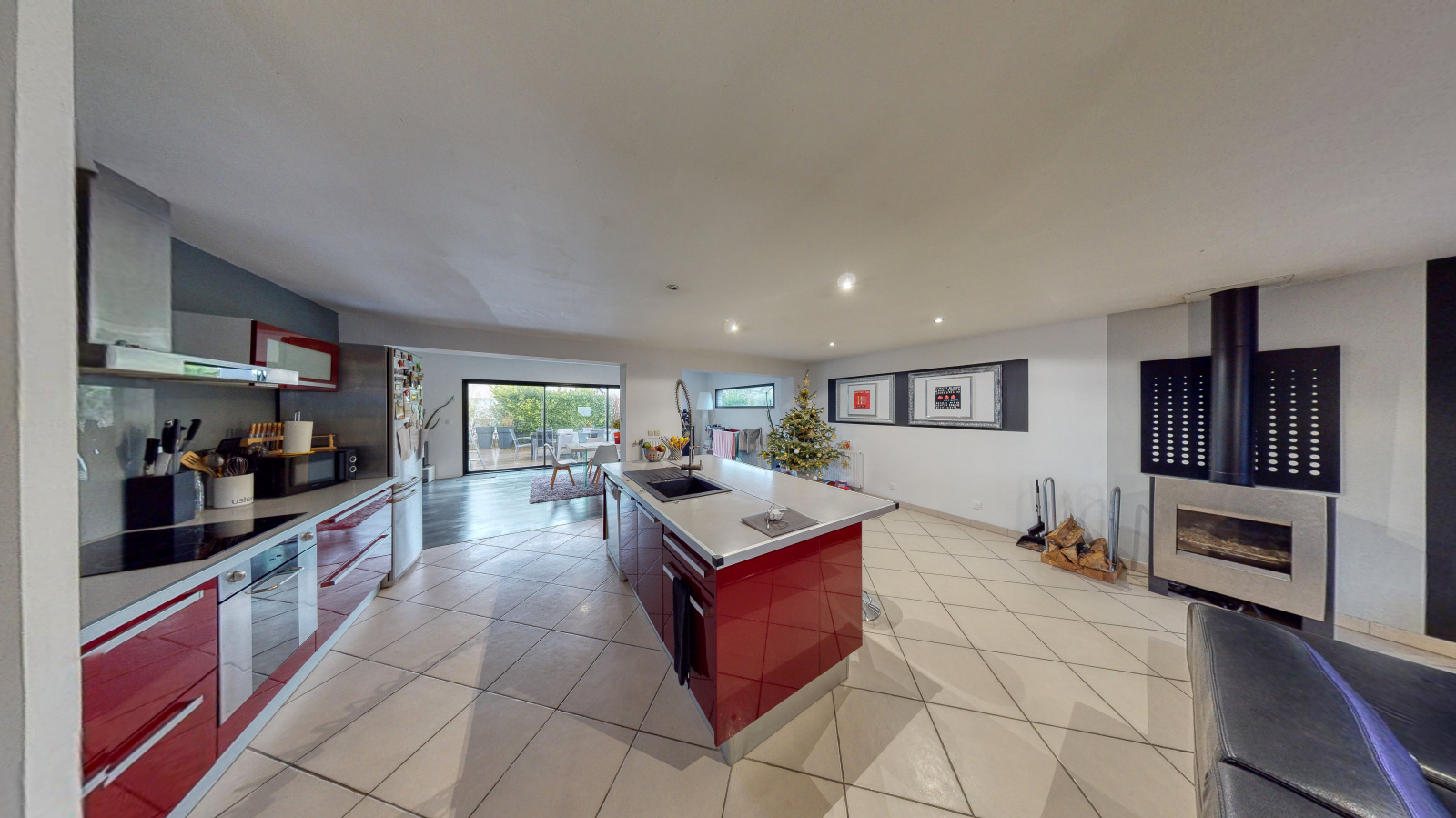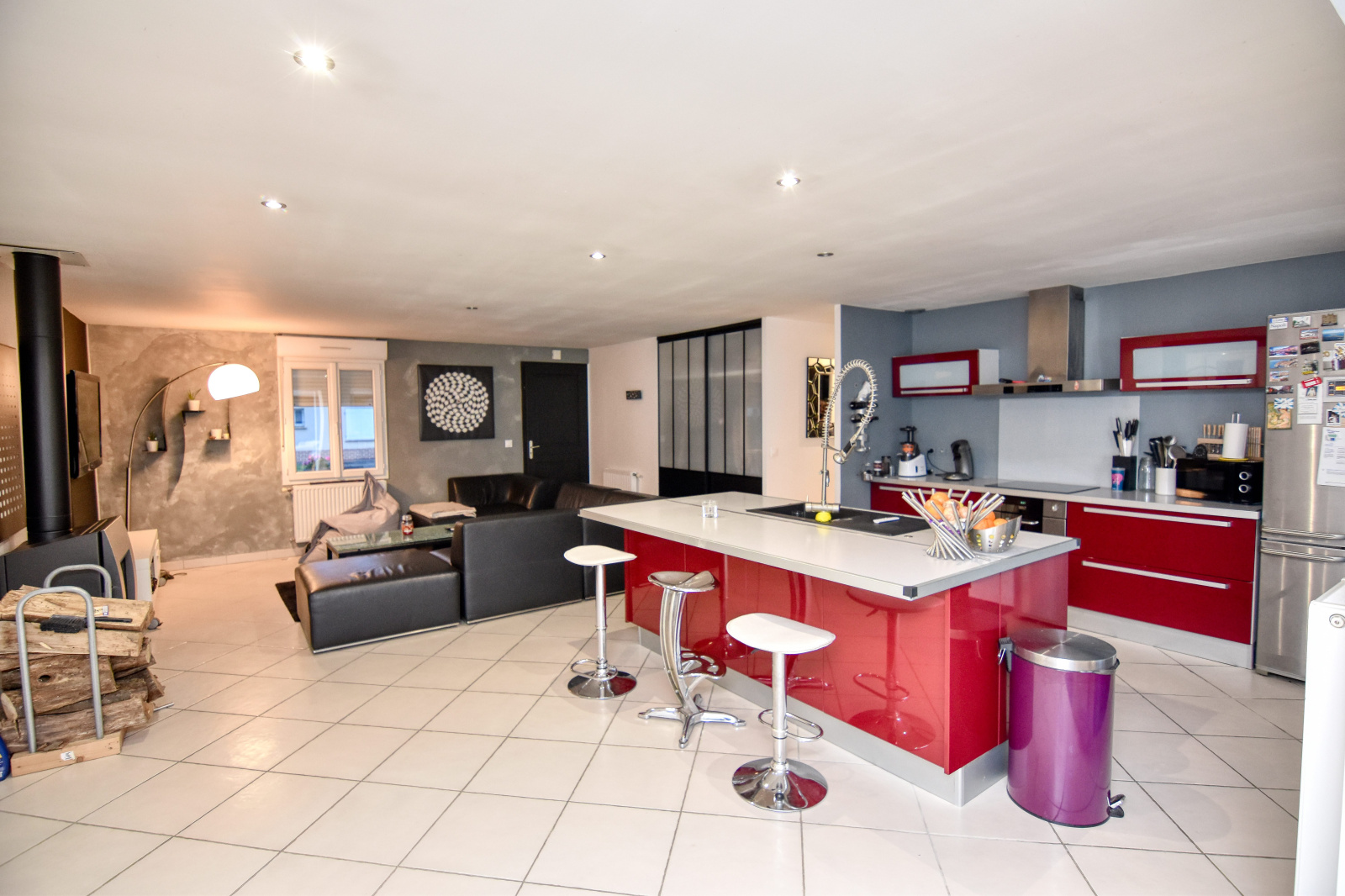 avec poêle à bois.