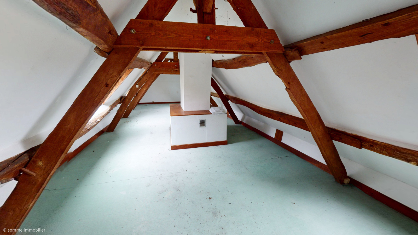 À l’étage : une grande pièce offrant la possibilité d’être divisée en deux chambres et un palier.