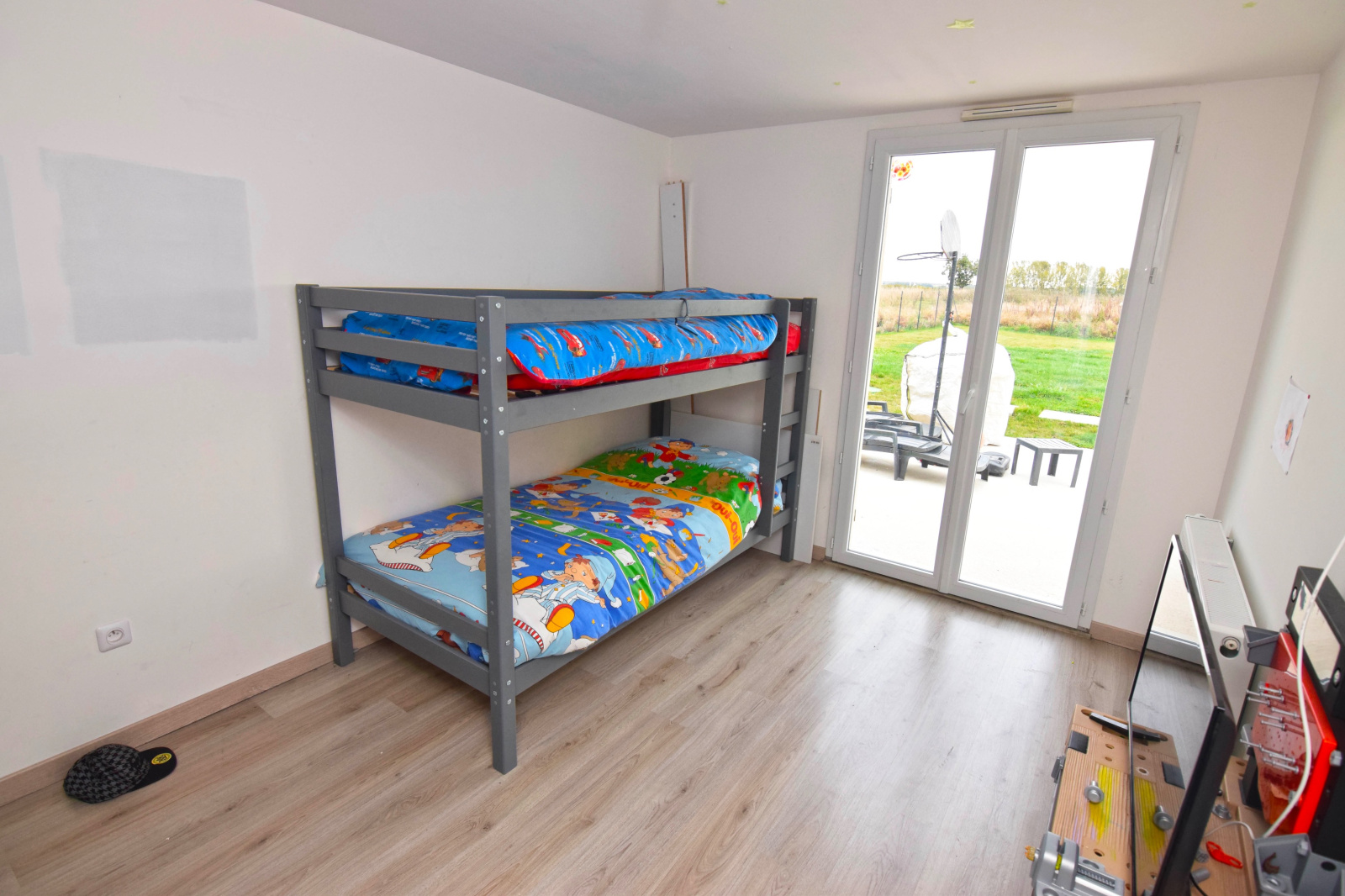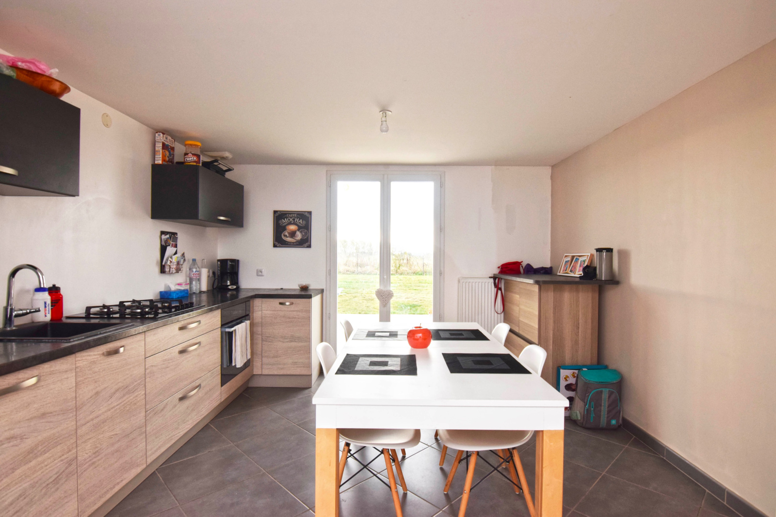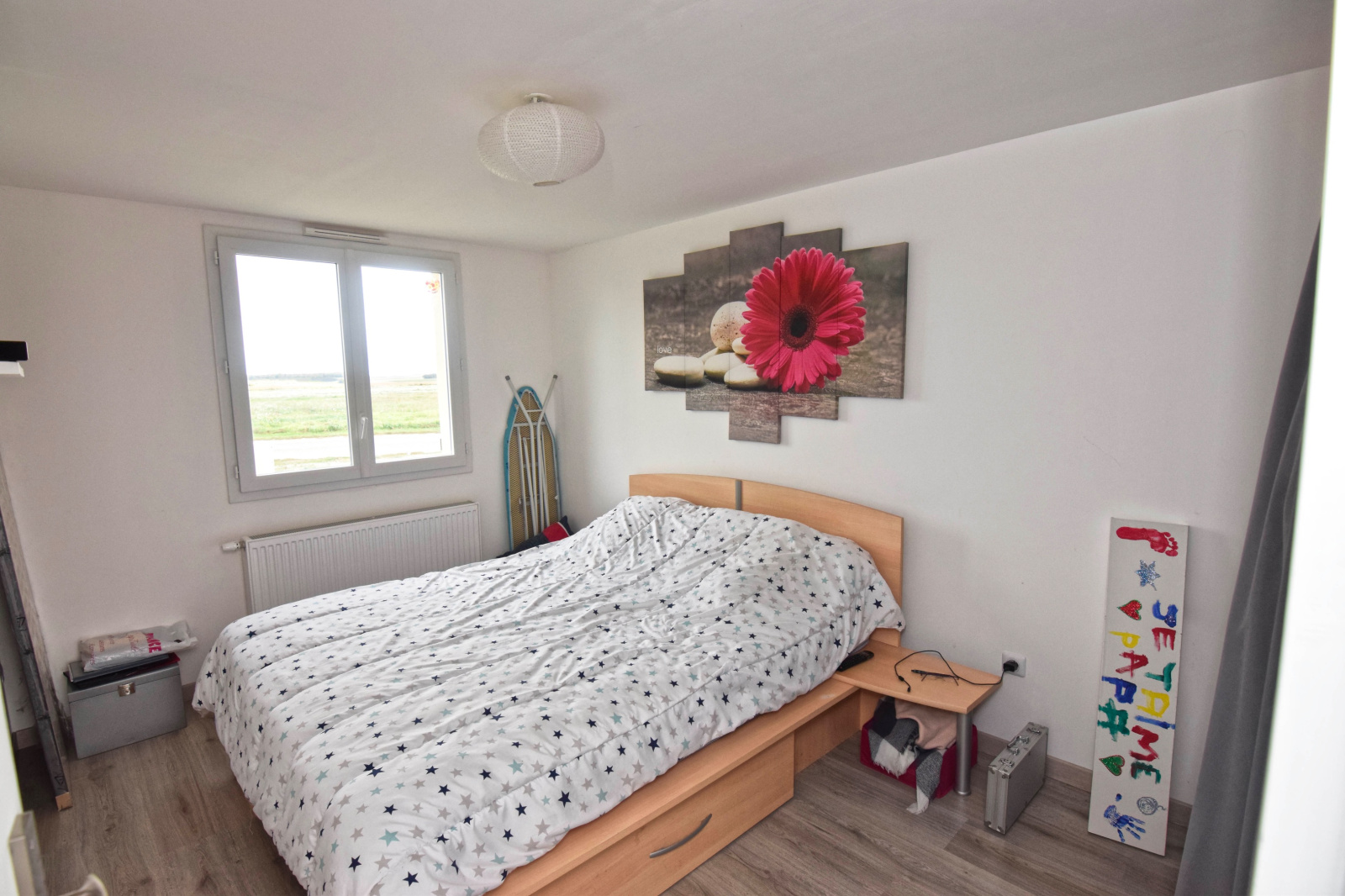 Pavillon individuel de plain-pied et comprenant: Une grande pièce de vie de 32m2 avec cuisine US aménagée et équipée, 3 chambres, salle de bains, WC.