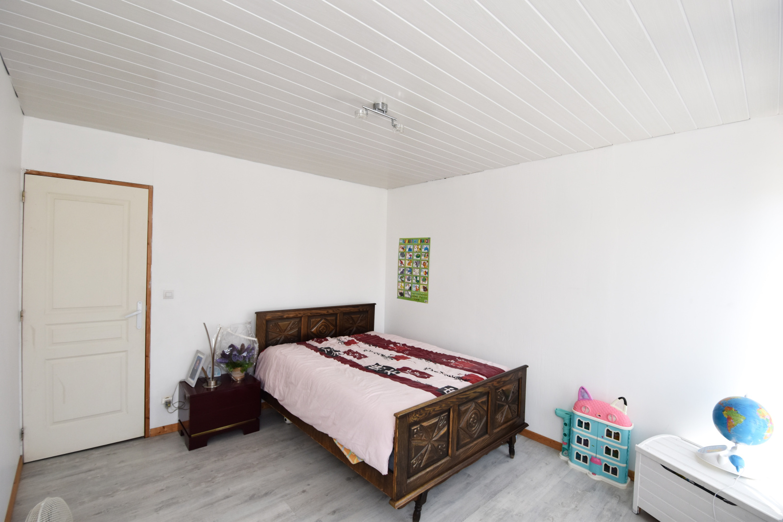 À l’étage : palier desservant trois chambres supplémentaires ainsi qu’une salle de bains.