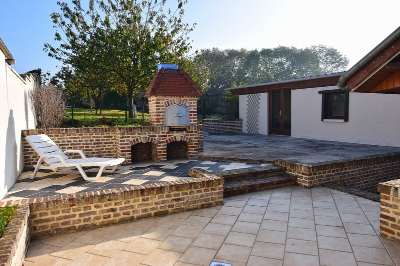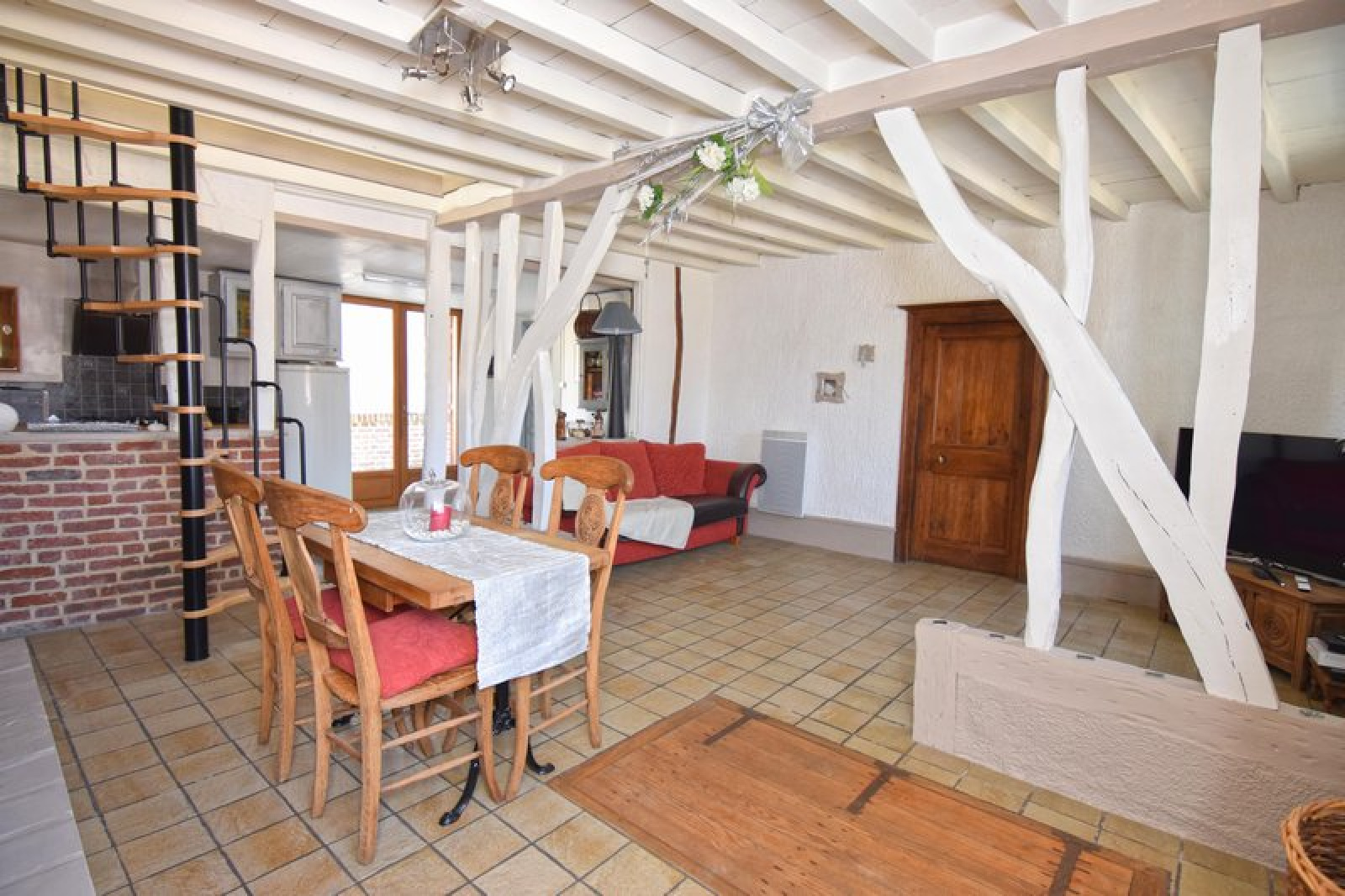 BELLOY-SUR-SOMME : Magnifique maison de village en briques de 102m2 habitable, a l'interieur chaleureux et soigne et offrant : Entree, Salle/Salon avec cheminée feu de bois insert et cuisine amenagée et equipée ouverte, 2 belles chambres de plain-pied (dont une avec porte fenêtre donnant sur la terrasse), salle d'eau, W.C. à l'étage: Un bel espace de vie de 28m2 (loi carrez) avec poutres apparentes et parquet (possibilité de créer un palier et 2 chambres), grenier. ,Menuiseries bois double vitrage. Chauffage mixte bois (avec répartiteur de chaleur) et électricité. Grande terrasse, cour, jardin clos avec cabanon. Une dépendance independante et isolée de 20m2. Le tout un agréable terrain clos et arbore de 1053m2 situé dans un environnement paisible. Posez vos meubles !!! Beaucoup de charme et de cachet ! Coup de coeur assuré !!!